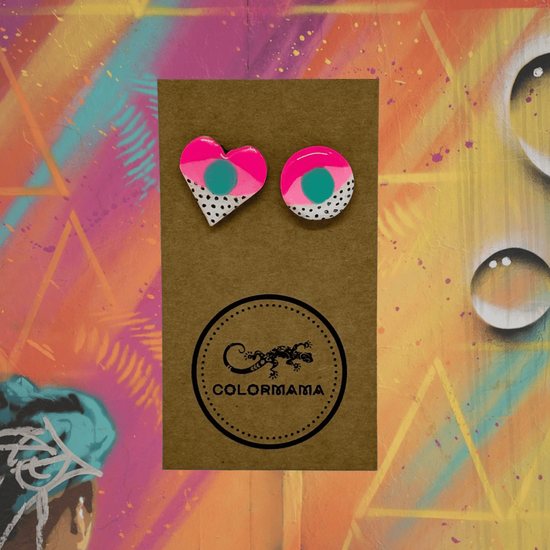 Kolczyki Rebel Heart to połączenie odwagi, koloru i swobody w nowoczesnej, geometrycznej formie. Neonowy róż, turkus, fiolet i czerń tworzą kontrast, który symbolizuje wolność, niezależność i własny rytm. To kolczyki dla kobiet o odważnych sercach, które lubią iść swoją drogą – z uśmiechem, luzem i kolorem.