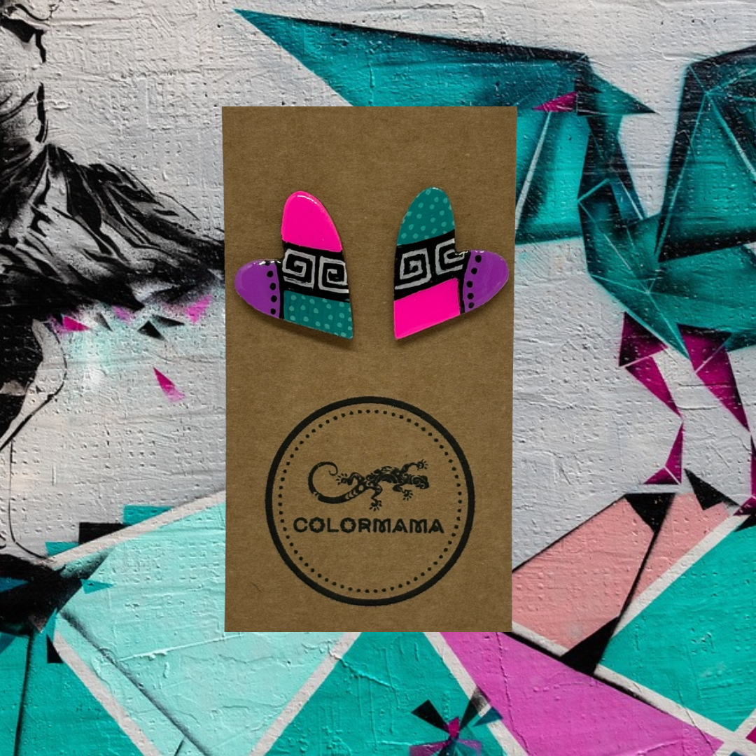 Kolczyki Wildly Yours to połączenie delikatnego kształtu serca z odważnym, panterkowym wzorem i mocnymi kolorami.